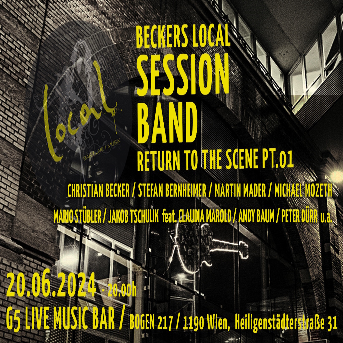 Die legendäre Band um den Ex-Local-Matador Christian Becker kehrt zurück an den Tatort nächtelanger musikalischer, energiegeladener Aufeinandertreffen auf der Bühne des Stadtbahnbogens 217 in Wien Spittelau, seit 2008 als Liveclub „Local“ bekannt und 2024 als G5 Live Music Bar wiedergeboren.